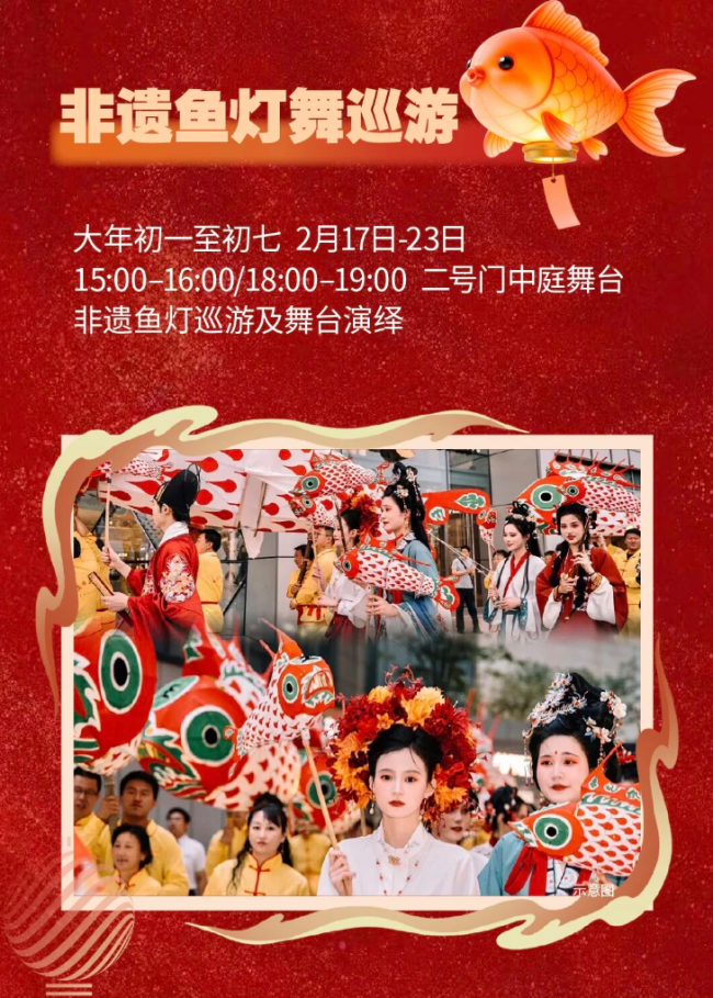 乌鲁木齐杉杉奥莱用从大年初一至初七,商场不仅照常营业,更将传统文化搬进商场,让年味浸润每一处角落。大年初一广场将迎来醒狮送福,鼓点如雷、醒狮腾跃,新年由百兽震撼开年,现场还将派发定制红包,摸狮头接福气讨个好彩头。同期中心舞台将上演鱼灯巡游,鱼灯象征 “年年有余”,寓意 “鱼跃龙门”,孩子们可跟随队伍一起巡游,拍照打卡出片,把流动的年味装进镜头。