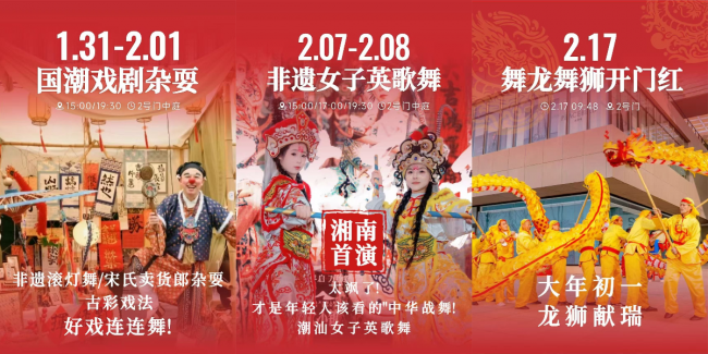 衡阳杉杉奥莱则以一场场非遗好戏,为新年注入了独属于湘南的热烈与鲜活。从国潮戏剧到英歌战舞,从开年龙狮到市井杂耍,每一场表演都在唤醒人们对传统年俗的鲜活记忆。非遗滚灯舞、宋氏卖货郎杂耍、古彩戏法轮番登场,仿佛穿越回热闹的市井街头;湘南首演的非遗女子英歌舞燃炸全场,潮汕英歌舞以飒爽战舞姿态,成为年轻人追捧的 “中华战舞”。顾客既能在沉浸式体验中触摸非遗文化的温度,也能在逛购中解锁新春惊喜,让新年的每一份期待都在热闹与欢喜中圆满兑现。